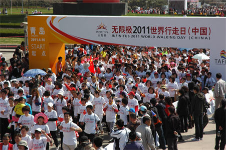 无限极 2011 世界行走日”活动,于4月16日在青岛五四广场盛大启动。活动的发起者——无限极(中国)有限公司向全社会发布首个《全民健康行走倡议》,倡导民众每天行走 6000 步,掌握正确的行走养生方式,养成行走习惯,形成健康的生活方式,用最简单有效的方法实现健康人生。