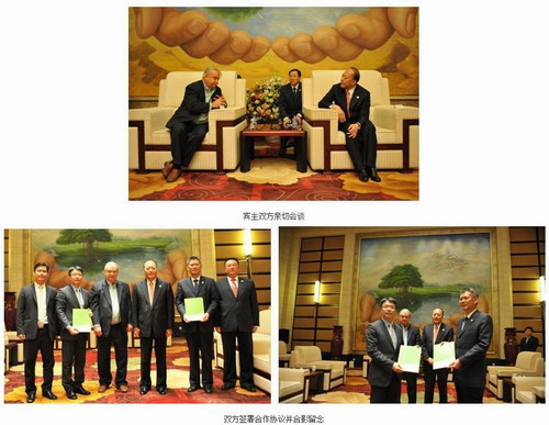 天狮集团董事长李金元先生在贵宾室接待了穆拉德博士一行。李金元董事长首先欢迎穆拉德博士一行来天狮集团做客,随后,简要地向客人介绍了天狮集团的发展历史、核心业务、主要产品、以及未来的发展方向,并对双方的未来合作充满期望。穆拉德博士对天狮集团在短短17年时间内发展到一个成熟的、充满朝气与活力的国际化企业表示惊讶,他相信,只要双方把一流的技术和一流的企业相结合,我们一定会在保健品市场、美容护肤品市场打开更广泛的市场。经过进一步的沟通和交流,双方签署了战略合作协议,为即将到来的实质性的合作奠定了基础。
