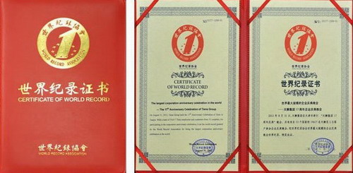 狮翔五洲十七载,爱洒寰宇千万家。以“超越梦想,引领未来”为主题的天狮集团十七周年庆典已圆满结束。在这个欢乐的海洋里来自世界各国的天狮家人们带着梦想与希望相聚在天狮集团国际健康产业园,将热情、祝福与期盼洒落在产业园的每一个角落,来自不同国家、不同民族、不同肤色的20000名天狮家人共创了这一历史性的神圣时刻,与此同时来自世界纪录组织的两名高级认证官也共同见证了这一精彩一幕,感受到天狮集团强大的凝聚力,为之感动,在天狮人热烈气氛的感召与天狮企业文化的熏陶下,在盛大的场面震撼下,澳籍认证官激动的用汉语大声说道“天狮,非常棒!”,同时世界纪录协会高级执行官特别为天狮颁发“世界最大规模的企业庆典晚会”这又一世界纪录证书,这是继“天狮,我们共同的家园”手拉手“一起飞翔”活动又一崭新的世界纪录,激励和鼓舞了天狮人拼搏向上,勇往直前,奔向第三次腾飞的辉煌。