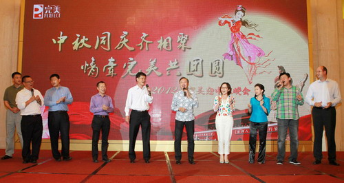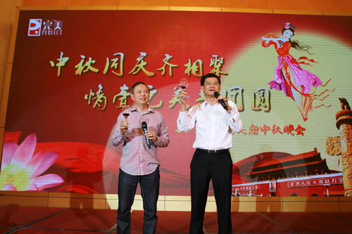 缘聚中秋夜,情牵完美人,正是花好月圆时,完美员工相聚一年一度的中秋佳节,为团圆举杯,为未来喝彩——9月27日、28日晚,2012完美总部迎中秋晚会在中山市金钻酒店隆重举行,许国伟副董事长、胡瑞连总裁与全体完美人共度月圆之夜,共迎美好明天。9月25日晚,扬州完美中秋晚会暨“诗意中秋·月圆完美”诗歌朗诵比赛精彩上演,胡瑞连总裁出席晚会,与扬州完美员工共庆佳节,同赏明月。