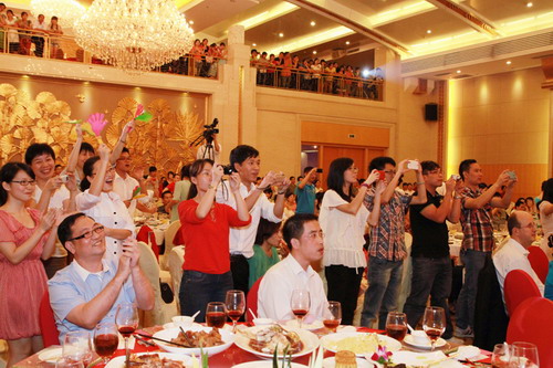 许副董事长在晚会上首先向大家致以节日的诚挚问候,并表示公司领导很欣慰每年与全体员工一起度过传统中秋佳节。完美是一个大家庭,感谢大家一路以来的相携相伴和辛勤付出,公司才不断取得优异成绩,稳健发展。未来,希望全体员工继续努力,冲刺目标,实现完美梦想。胡总裁专程出席扬州完美晚宴,祝福员工们节日快乐,并感谢大家跟随公司一起拼搏,扬州完美才有喜人成绩。希望大家再接再厉,为实现新的梦想继续奋斗。
