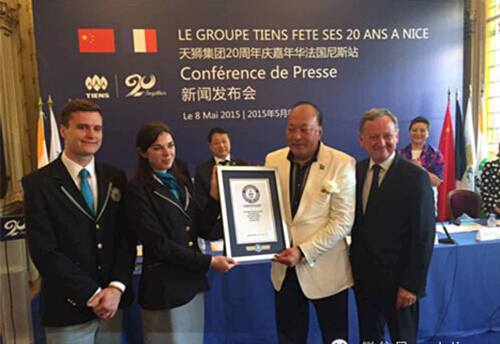 发布会上,吉尼斯世界纪录认证官向天狮集团颁发了天狮人刚刚创造的“最大规模人体主题创意组字活动”的吉尼斯世界纪录证书,法国尼斯市政府向李金元董事长颁发了“杰出贡献奖”荣誉奖章,李金元董事长以个人名义向国际扶轮社爱心捐赠3000欧元。