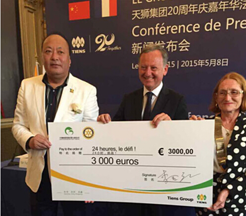 发布会上,李金元董事长以个人名义向世界上历史最悠久的服务性社团公益组织——国际扶轮社(Rotary International)爱心捐赠3000欧元,用于专项帮助残疾人士工作就业的“24小时挑战”( 24 heures, le défi ! )公益项目,并表示将持续关注该公益组织及相关公益项目,共同为促进社会与经济发展,发扬和平友爱精神尽一份爱心力量。国际扶轮社尼斯主席Laure CARLADOUS女士接受了李金元董事长的爱心捐赠,颁发国际扶轮社会员证书,并对李金元董事长和天狮人表示真挚的感谢与敬意。