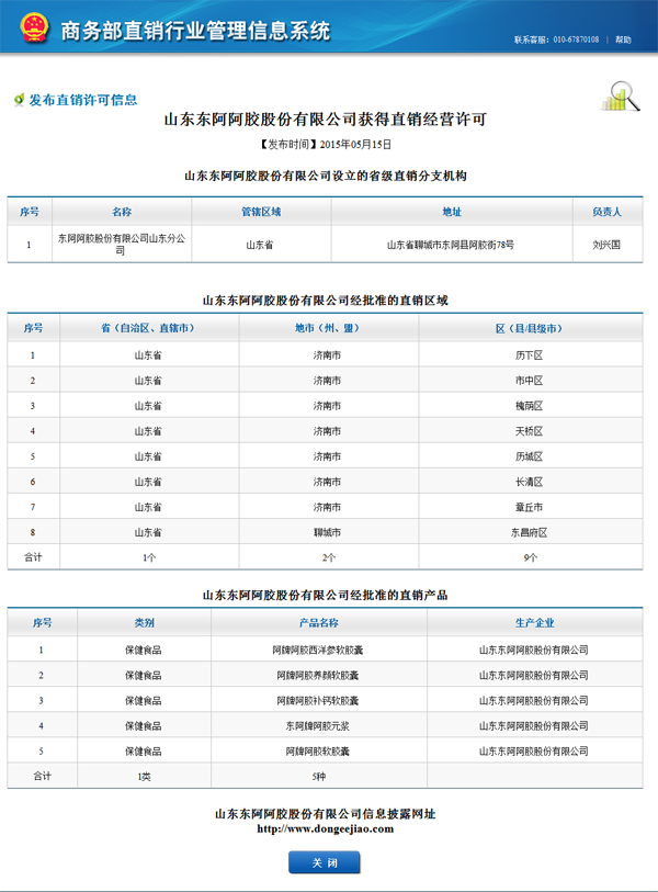 商务部山东东阿阿胶股份有限公司获直销经营许可