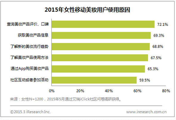 根据艾瑞2015年5月针对中国女性开展的时尚触媒及消费行为的调查显示,女性用户使用美妆类APP的首要原因是“查询美妆产品评价、口碑”,说明通过海量数据挖掘美妆产品的口碑,进而为用户进行有价值的推荐,对于用户的消费决策有着至关重要的作用。在大数据的指引下,女性将可能寻找到更适合自己的美妆产品,借助大数据技术装扮更加性感完美的自己。