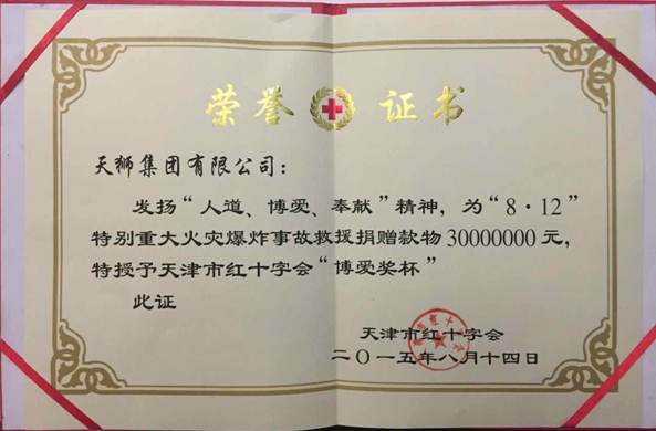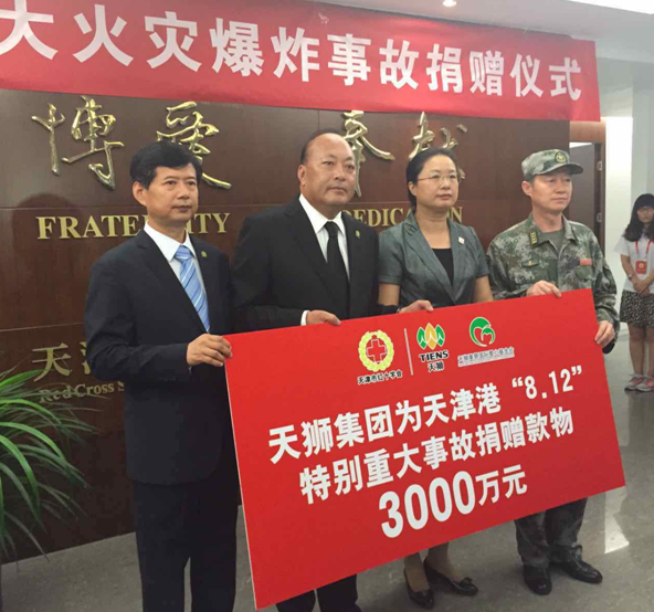 天狮集团一直把履行企业社会责任作为重要使命之一,此次捐赠再次体现了天狮人“感受爱、创造爱、传播爱”的爱心理念与行动,天狮集团将密切关注事故救援进展,并做好进一步支持救助的准备,为建设美丽天津贡献力量。