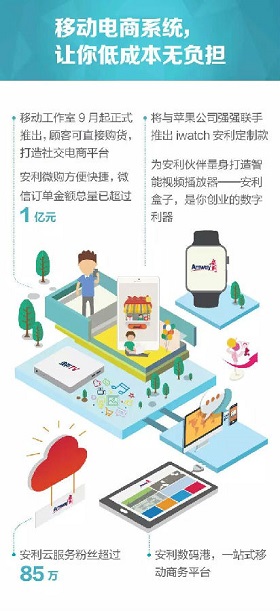 未来的机遇,在于传统企业跟互联网结合,线上线下形成联动和闭环,无缝地满足消费者需求。所以苏宁联手阿里了、永辉联手京东了、安利拥抱“互联网+”了。为了在未来十年更好地为创业者提供服务,实现成功创业者倍增,新安利倾力打造了O2O大众创业平台,彻底打通线上线下,人联网与互联网相结合。这就等于用数字化为你插上了翅膀,给你全程无忧的一站式创业支持服务,带你成长带你飞。