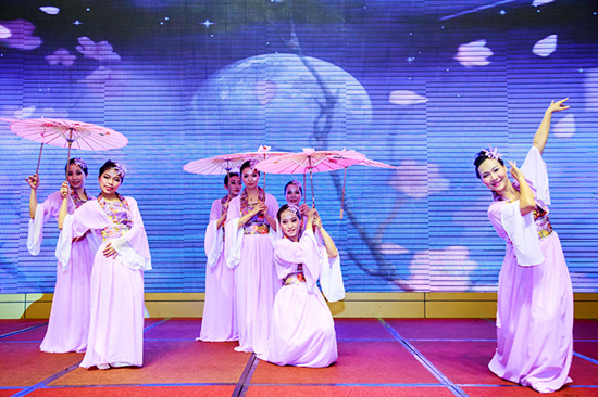 各参赛队伍倾情表演,最终由财务部、人力资源部、行政部联合表演的《众人划桨开大船》夺得桂冠。员工自编自演的节目为大家带来美妙的视听享受。月圆之夜,许副董事长一首自弹自唱的《月亮代表我的心》,应时应景、酣畅淋漓,赢得大家热烈的掌声。