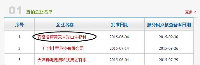 直销行业网讯 本网记者从商务部直销行业管理信息系统中获悉,安徽康美来大别山生物科技有限公司在9月30日通过了服务网点核查备案日期,成为今年第17家获牌直销企业,同时也是安徽省的首家获牌企业。