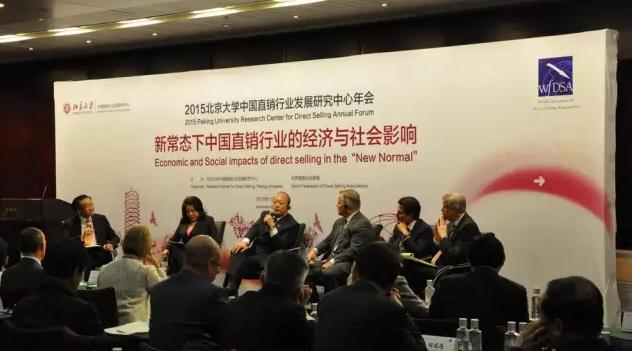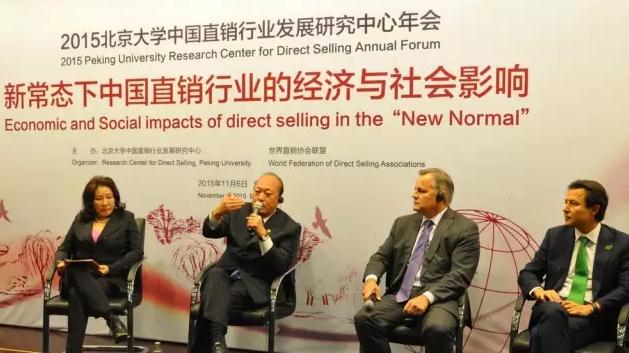 直销行业网讯 2015年11月6日,李金元董事长应邀出席于北京大学举办的“新常态下中国直销行业的经济与社会影响”主题论坛暨北京大学中国直销行业发展研究中心2015年年会,与到场的嘉宾一起,共同探讨在新常态新背景下,行业的社会经济形势及未来发展机遇。商务部市场秩序司司长常晓村,市场秩序司副处长戴毓高,工商总局反垄断与反不正当竞争执法局局长白京华等领导出席本次活动。