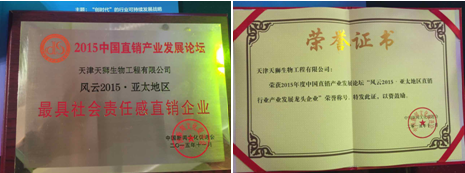 直销行业网讯 2015年11月21日,由中国文化促进会和海畴企业集团联手打造的“2015中国直销产业发展论坛暨直销立法十周年庆典”在北京九华山庄隆重举行,天狮集团作为直销行业龙头企业亮相本次庆典,并荣获“最具社会责任感直销企业”和“亚太地区直销行业发展龙头企业”两项大奖。