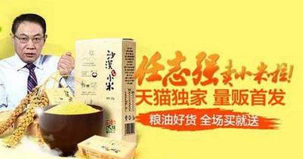 11月25日,定名为“任小米”的沙漠小米在天猫开启预售,首批聚划算活动共计37500盒(4斤/盒),售价49.9元/盒(包邮),前1000名下单者即赠送1斤小米。对于任小米上天猫这件事,任志强说:“节水的沙漠小米,承担着治理荒漠化的重任。每一份购买也是对环境保护的一份爱心奉献。”