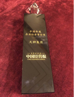 2015年,越来越多的企业积极承担社会责任,努力创造社会价值,在众多企业中,天狮集团在社会责任方面表现突出。多年来天狮集团持续关注弱势群体、支持教育事业、热衷于保护环境、赈灾扶贫的活动。截至目前,天狮集团在全球范围内公益爱心捐赠款物,累计已超过15亿元人民币。鉴于天狮集团常年在爱心公益事业上的积极践行和不断投入,以及李金元董事长对天狮大学等教育事业做出的巨大贡献,故荣获“中国年度企业社会责任”大奖。