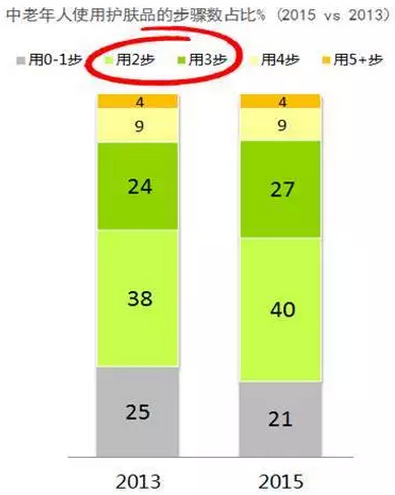 凯度消费者指数使用样组的数据显示,中老年人群中使用护肤品2步和3步的人由62%增至67%,还有13%的中老年使用护肤品超过4步。然而,市场上具有针对性的老年护肤品十分匮乏。美妆品类亦然。值得一提的是,消费者会把他们的习惯带到未来,现今的70后、80后爱美一族,就是未来的爱美老年人!中老年人日渐注重个人保养及护理,开发具有针对性、功能性的老龄人生活用品蕴含金色机遇。