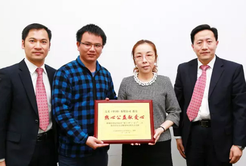 广东省中山市阳光社会工作服务中心向完美公司颁赠荣誉牌匾