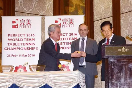 直销行业网讯 1月16日,2016年吉隆坡乒乓球团体世锦赛抽签仪式在马来西亚举行,完美公司董事长古润金作为马来西亚乒乓总会会长出席仪式,并为世乒赛进行抽签。