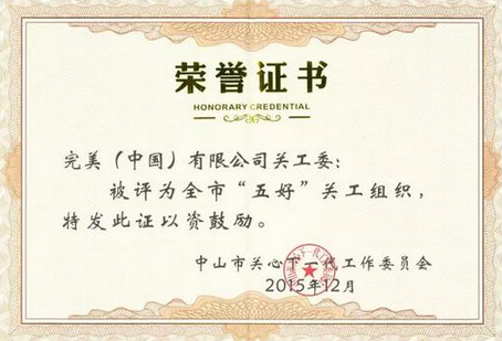 直销行业网讯 近日,完美公司关工委被评选为中山市“五好”关工组织。中山市自开展创建“五好”关工组织活动以来,成果显著,尤其是非公有制企业关工组织建设取得较大进展,拓展了关心下一代活动阵地,走在广东省前列。