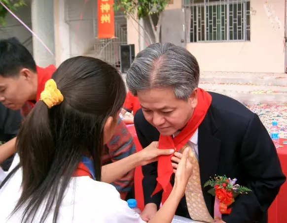 完美希望小学孩子为古润金董事长系上红领巾