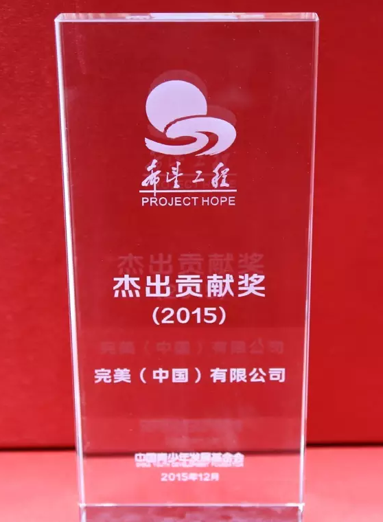 直销行业网讯 近日,由于对希望工程公益项目的长期支持,完美(中国)有限公司被中国青少年发展基金会授予“希望工程2015杰出贡献奖”荣誉称号。截至目前,完美公司已向希望工程捐款逾1亿元人民币,捐建100多所完美希望学校。