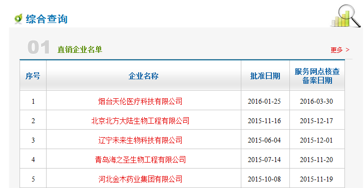 直销行业网讯 30日,小编从商务部直销行业管理信息系统了解到,山东烟台天伦医疗科技有限公司获得了第72张直销牌照,批准时间是2016年1月25日,服务网点核查备案日期为2016年3月30日。烟台天伦医疗是商务部2016年公示的首家获牌企业。