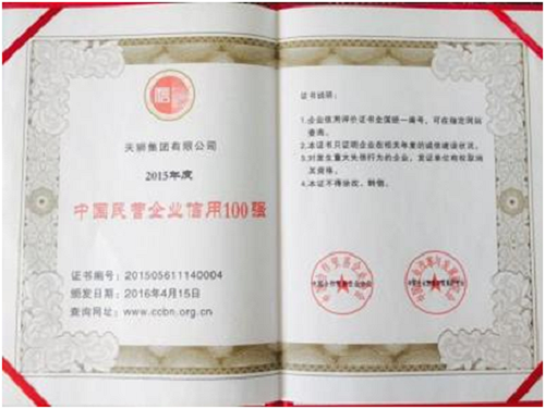 直销行业网讯 由中国合作贸易企业协会、中国企业改革与发展研究会、商务部研究院信用评级与认证中心联合开展的中国企业信用评价工作中,天狮集团再次荣获2015年度“中国企业信用500强”荣誉称号,“中国民营企业信用100强”以及“中国制造业企业信用100强”殊荣。