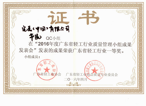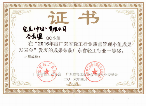 直销行业网讯 4月20-22日,广东省轻工业协会质量专业委员会在广州市召开“2016年度广东省轻工行业质量管理小组成果发表会”,完美(中国)有限公司五个QCC项目参加此次发表,均获得奖项。其中,采购部尽美圈QC小组、保健食品一厂节流QC小组荣获“广东省轻工行业一等奖”;保健食品二厂活力圈QC小组、创效圈QC小组荣获“广东省轻工行业二等奖”;财务中心效能圈QC小组荣获“广东省轻工行业三等奖”。
