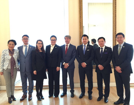 加尔西亚副主席(右四)与天狮集团董事李宗民先生(右三)、天狮集团副总裁刘天傲女士(左四)等一行高管亲切合影