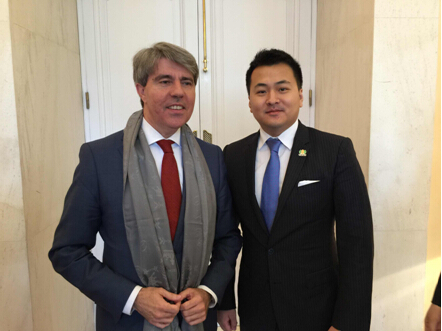 加尔西亚副主席对天狮集团选择马德里作为此次大型高端旅游及文化交流活动举办地表示衷心感谢,并代表马德里自治区民众对3000名和平与友谊的天狮使者的到来表示热烈的欢迎,称赞天狮举办中西建交42周年以来最大规模的民间文化交流盛会,创造了和平与友谊的奇迹。加尔西亚副主席表示,马德里自治区是欧洲的旅游圣地,也是西班牙的商业中心和“总部经济”中心,相信天狮人在此一定会感受到西班牙旅游的魅力,也希望未来能加强与天狮集团的合作,并请李宗民先生代向李金元董事长致以亲切的问候和感谢!