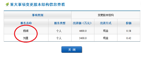 直销行业网讯 5月12日,小编从商务部直销行业管理信息系统网站查询到天津市康婷生物工程有限公司变更重大事项的信息:康婷公司注册资本由8000万元变更为1亿6000万元,公司股本结构也发生了变化。变更前,公司只有两位出资人,总经理杨琪出资额为4600万元,份额为58%,刘星出资额为3400万元,份额为42%。变更后,康婷公司董事长刘小兵成为最大出资人,出资额为6400万元,份额为40%,总经理杨琪出资额6200万元,份额为39%,刘星出资额为3400万元,份额为21%。详情如下: