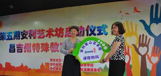 安利(中国)日用品有限公司新疆西藏副总监车书君女士向昌吉州特殊教育学校捐赠安利艺术坊物料牌