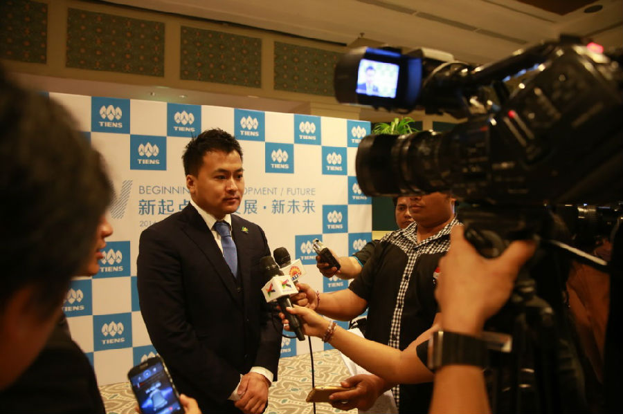 直销行业网讯 2016年9月10日,出席印度尼西亚巴厘岛“新起点、新发展、新未来”天狮集团21周年庆典暨大规模民间文化交流活动的天狮集团高管团队,在Westin酒店接受了印度尼西亚Indopos 、Xinhua News Agency 、Kompas.com 、Media Indonesia 、Kontan、BALI TV 、OMPAS DEWASA等20余家主流媒体联合采访,就天狮集团21周年庆典系列活动的意义、天狮在印尼市场的发展情况、天狮未来发展规划等方面与媒体朋友深入交流互动。天狮集团董事、董事长助理李宗民先生,天狮集团副总裁、亚太区总裁李林先生,天狮集团副总裁刘天傲女士参加了本次媒体活动。