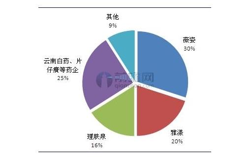 目前,中国药妆市场处于探索和发展阶段,国内药妆市场几乎被薇姿、理肤泉、雅漾等外资品牌所占据,数据显示,以上三大品牌在国内药妆市场占有60%的市场份额,并且每年以30%的速度在增长。