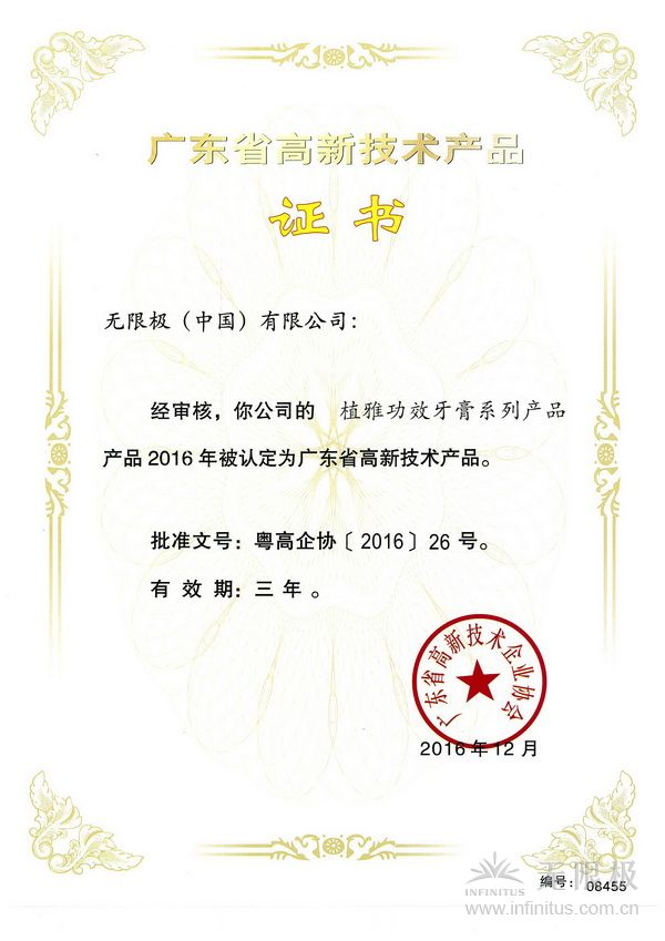 直销行业网讯 近日,无限极(中国)有限公司19类共56款产品被认定为2016年“广东省高新技术产品”,证书有效期为3年。其中11类产品首次认定为高新技术产品。具体产品情况如下: