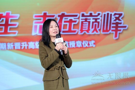 授章仪式上,黄雅茜女士代表公司致辞,“你们用今天的成功,证明无限极就是实现梦想的卓越舞台,希望未来你们带领更多的伙伴永攀高峰,迈向更大的成功!”