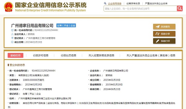 据资料显示,德家2015年创立于广州,注册资金1.08亿港币,营运总部位于深圳湾阿里云大厦,于广州建有1万㎡的gmp工厂,旗下拥有四大独立品牌:智能硬件品牌D.Air;植物芳疗品牌BLESSI;移动社交品牌D.Talk;移动电商品牌D.Buy。