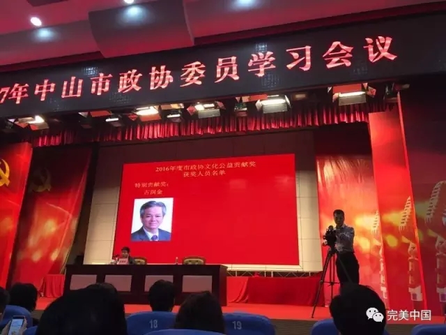 过去一年,古润金积极履职,带领完美公司一如既往为中山市经济、文化、公益事业贡献力量,得到了中山市各级政府的首肯。2016年正值孙中山先生诞辰150周年,完美公司再次携手市政协、市广播电视台,推进大型交响组歌《孙中山》走进吉隆坡演出。