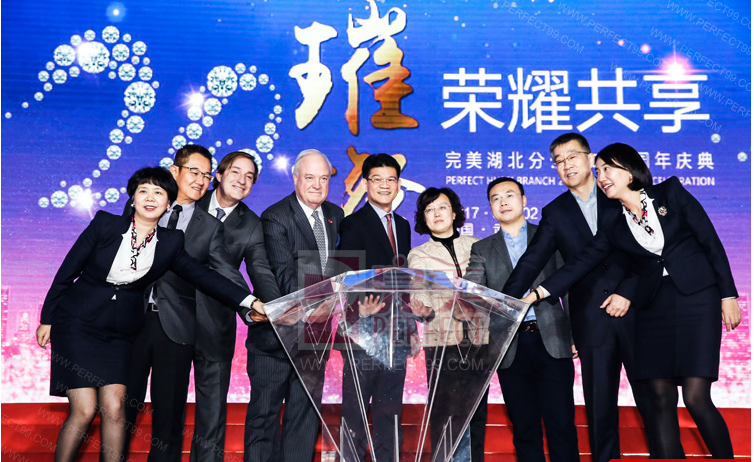 2017年4月2日,庆典大会在武汉隆重举行。武汉市武昌区副区长谢济全、区宣传部部长李蓉、区政协副主席陈鹏南、完美公司总裁胡瑞连、智利驻华大使贺乔治等领导嘉宾,以及来自全国各地的完美经销商代表共同出席了此次盛典。