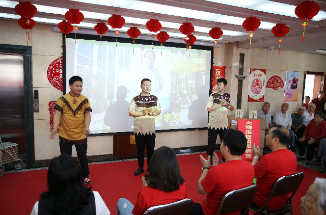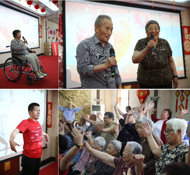 在文艺演出环节,天狮外籍员工表演的相声逗得大家合不拢嘴。泰济生医院独创的健身操“六段情”引起了老人们的极大兴趣,在爱心志愿者带领下,大家伸展身体,学习得十分投入。老人们还争相上台表演,秀出自己的活力和风采。