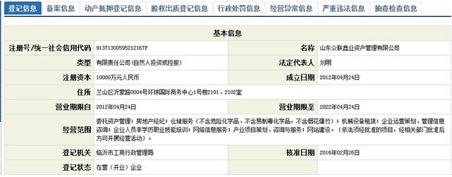 头条君(微信公号id :ds-toutiao)在全国企业信用信息公示系统中查到,众联鑫业注册资金10000万元,成立日期2012年4月24日,法人刘明,董事长林玉红,自然股东有沈德同、张华玲。