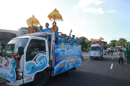 2016年9月,天狮21周年庆典在印尼·巴厘岛召开。在巡游的花车上,在数百面“和平”旗帜宛如蓝色巨浪般铺开的瞬间,她热泪盈眶。