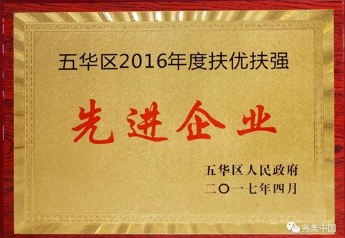 直销行业网讯 凭借2016年在昆明市五华区经济发展及非公党建等领域的积极贡献,完美(中国)有限公司云南分公司再次荣获五华区2016年度“扶优扶强先进企业”称号,两年共获得“扶优扶强”奖励金11.4万元。