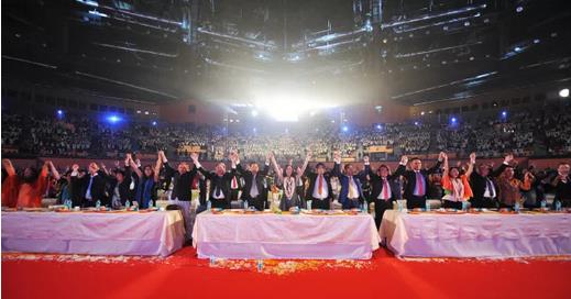直销行业网讯 2017年11月5日,天狮集团22周年庆典大会在印度新德里英迪拉·甘地体育馆(Indira Gandhi Sports Complex)隆重举行,来自全球近50个国家的10000余名天狮事业伙伴共同见证了这一盛事。本次大会主题为“东方智慧,闪耀未来”。22年来,天狮致力于传播东方养生智慧,助力推动中华文化走向世界,现在,天狮以大会为契机,向全球全面启动新业务新发展,以“一体多翼、三网合一、多网互动”为核心,推动全球化发展的进一步深入,实现第三次事业腾飞,让世界更多人认识、认同中国民族品牌,认同中华文化,共同开启闪耀未来。天狮集团李金元董事长通过视频表达了问候并致辞,天狮集团高管,中国社科院专家,印度著名瑜伽大师、全球跨信仰联盟创始人之一、恒河行动创始人、世界和平大使切达南达大师及众多知名媒体记者出席了大会。
