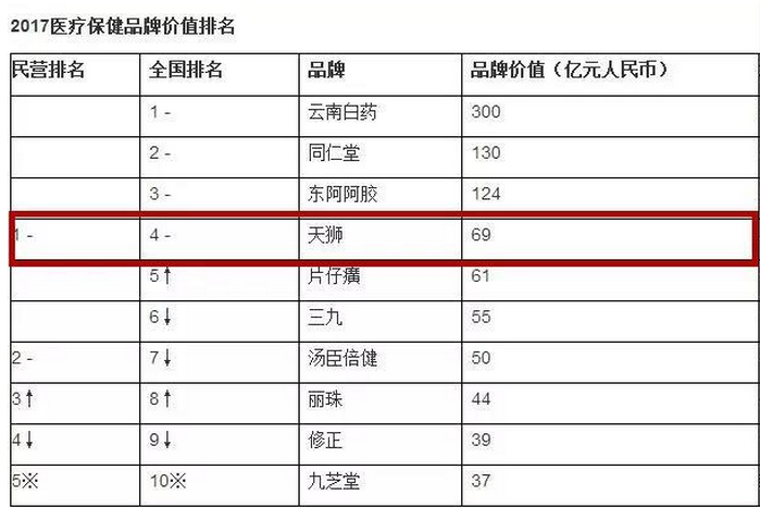 医疗保健行业:天狮蝉联民营品牌医药保健行业的冠军,位居全国排名第四名。