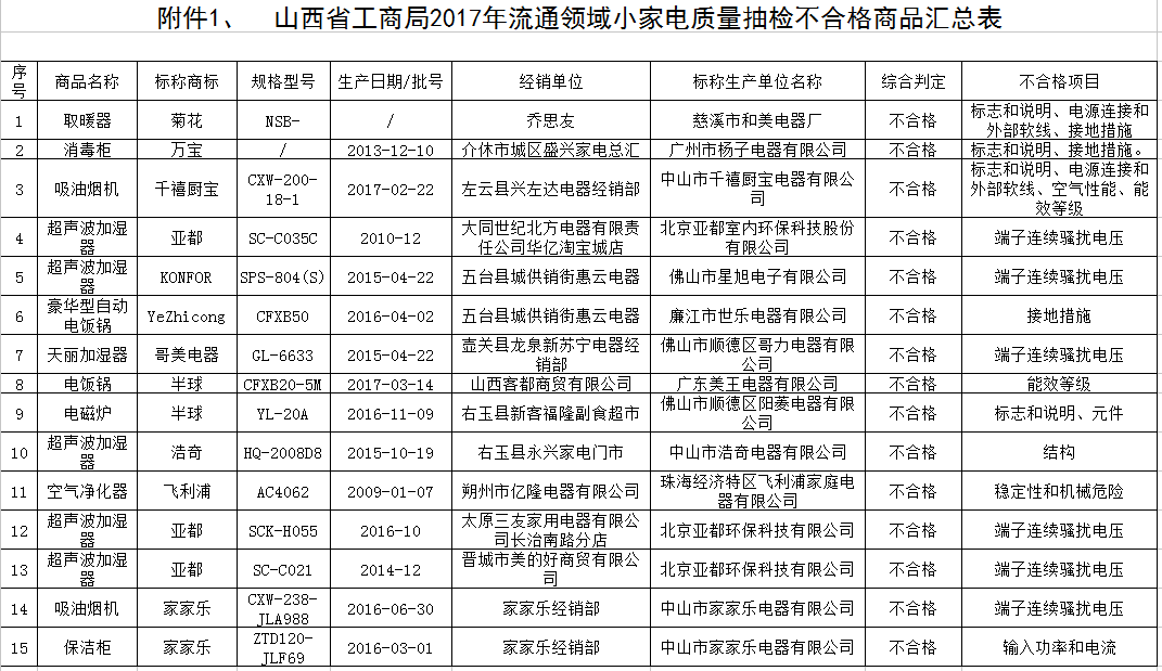 直销行业网讯 从今年5月份开始,山西省工商局按照流通领域商品质量年度抽检计划的安排,对全省流通领域小家电、电工类商品质量进行了抽查检验。
