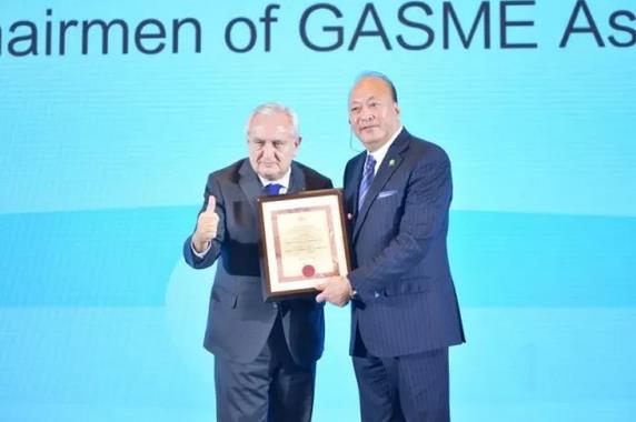 图:拉法兰先生为李金元董事长颁发全球中小企业联盟中国区高级副主席聘书