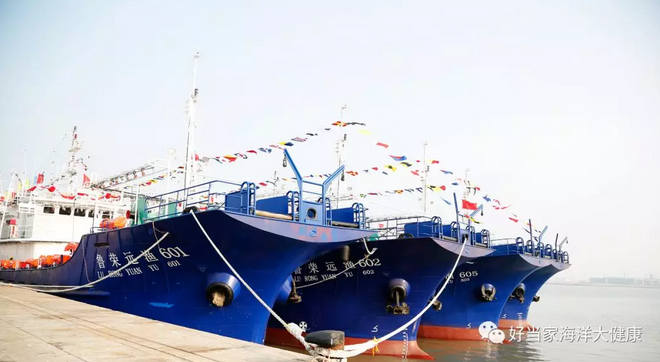远洋捕捞属于国家鼓励项目,但鱿钓不是每个企业都能参与的。对鱿鱼这种属于优质蛋白的海洋生物资源的开发利用,我们国家有一定的指标。好当家远洋渔业公司这8条鱿钓船的更新建造自2017年6月正式开工,钓船全长60.88米 宽10.5米,功率1500千瓦,载重量1000多吨,配备了最先进的鱿钓设备。公司同时为远洋鱿钓船队采购了大批食品、常用药品以及其他各种用品,并在每条船上配备了三台海水淡化设备,近30车补充物资,以解决船员们远洋作业的后顾之忧。