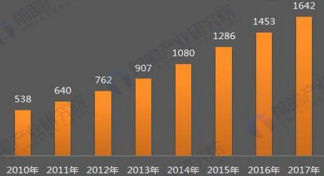 图表1:2010-2017年国内小型厨具市场规模(单位:亿元)