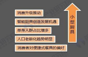 由于小型厨具为家用、商用领域必备,并且随着我国人口规模的快速扩大,小型厨具行业将会稳定持续增长。并且,目前随着社会经济的发展,生活水平的上升,餐桌饮食逐渐开始注重美观、多样、厨具也不再仅仅是注重实用主义,逐渐走向多样、美观、环保,这也给我国小型厨具产业带来了新的发展方向。未来几年中国厨具市场销售量以13%左右的惊人速度上升。预计到2022年,我国小型厨具市场容量将会超过3000亿元。