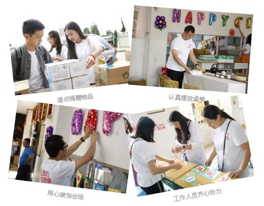 抵达会场后,所有工作人员一起装饰会场、整理物料