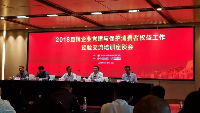 直销行业网讯 6月6-7日,2018直销企业党建与保护消费者权益工作经验交流培训座谈会在贵州省遵义市召开。本次座谈会由直销企业保护消费者权益联盟主办、中国消费者报社支持。国家市场监督管理总局非公经济组织党建工作领导小组副组长、个体私营经济监管司(非公党建办)副司长(正司级)、副主任韩旭、反垄断与反不正当竞争执法局直销监管处调研员李浩永、贵州省工商局副局长丁琨、中国消费者报社副总编辑杨力军出席座谈会并讲话。天津和治友德制药有限公司副总经理郅群女士代表公司应邀出席。